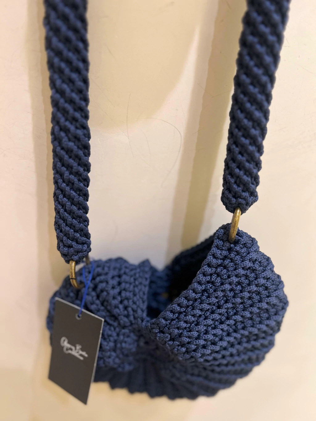 Feita inteiramente à mão em crochê, essa bolsa em formato de concha une delicadeza e força em cada ponto. Uma peça única que carrega o movimento do mar e o tempo da criação nas próprias curvas.