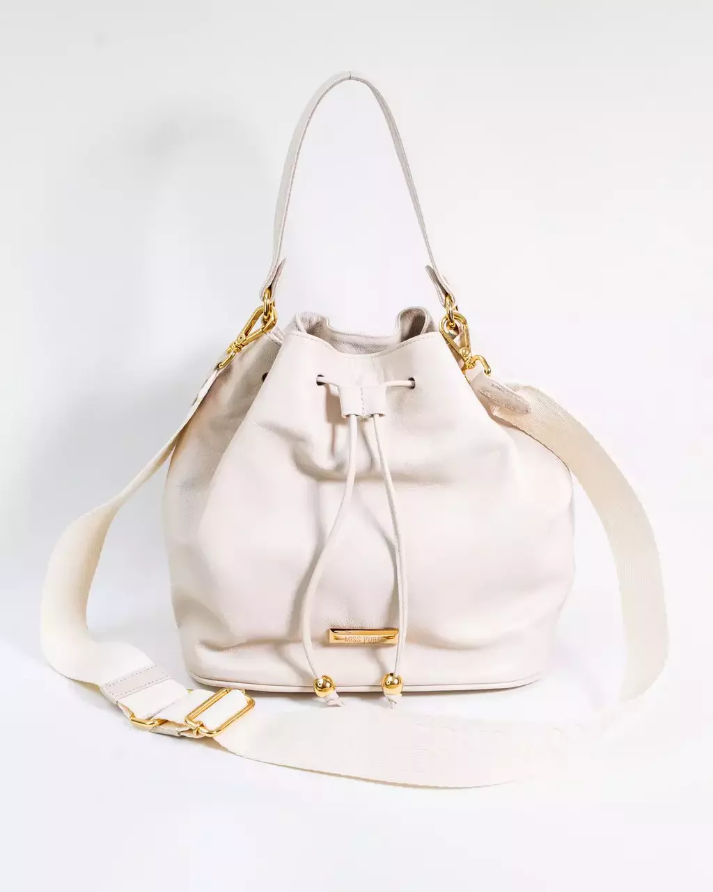 A bolsa de couro legítimo bucket Luci com alça adicional em gorgurão é uma peça versátil e moderna que combina praticidade e estilo. Seu design descontraído e atemporal a torna perfeita para o dia a dia, enquanto a alça adicional em gorgurão oferece um toque cool e ao meso tempo sofisticado.